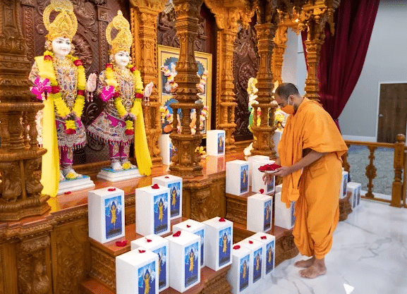 Worship: Devotional worship is offered throughout the day, including darshan (reverent viewing of the deities) and arti, a ritual waving of lighted wicks. Visitors can also participate in other ceremonies and spiritual assemblies.