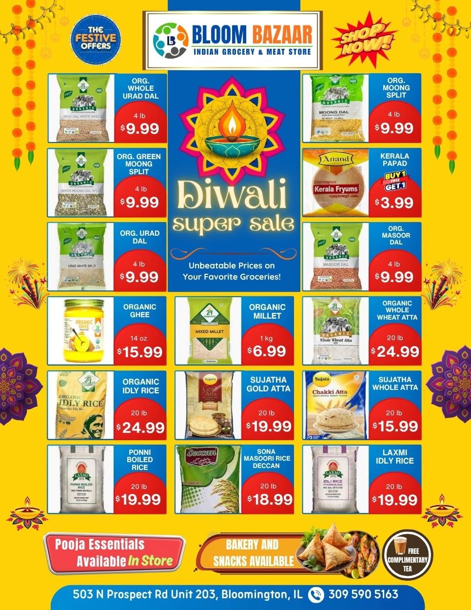 Bloom Bazaar Indian Grocery & Meat Store is a Desi-owned business serving Bloomington, Illinois, and the surrounding area. Located at 503 N Prospect Rd, Bloom Bazaar offers a wide selection of fresh Indian groceries, vegetables, spices, and halal meats. It's a convenient, local source for the Indian and South Asian community's everyday culinary needs. The store is known for its fresh produce, diverse stock of Indian ingredients, and Halal butchery. Bloom Bazaar serves as a vibrant community hub in Bloomington for those seeking authentic Desi food products.