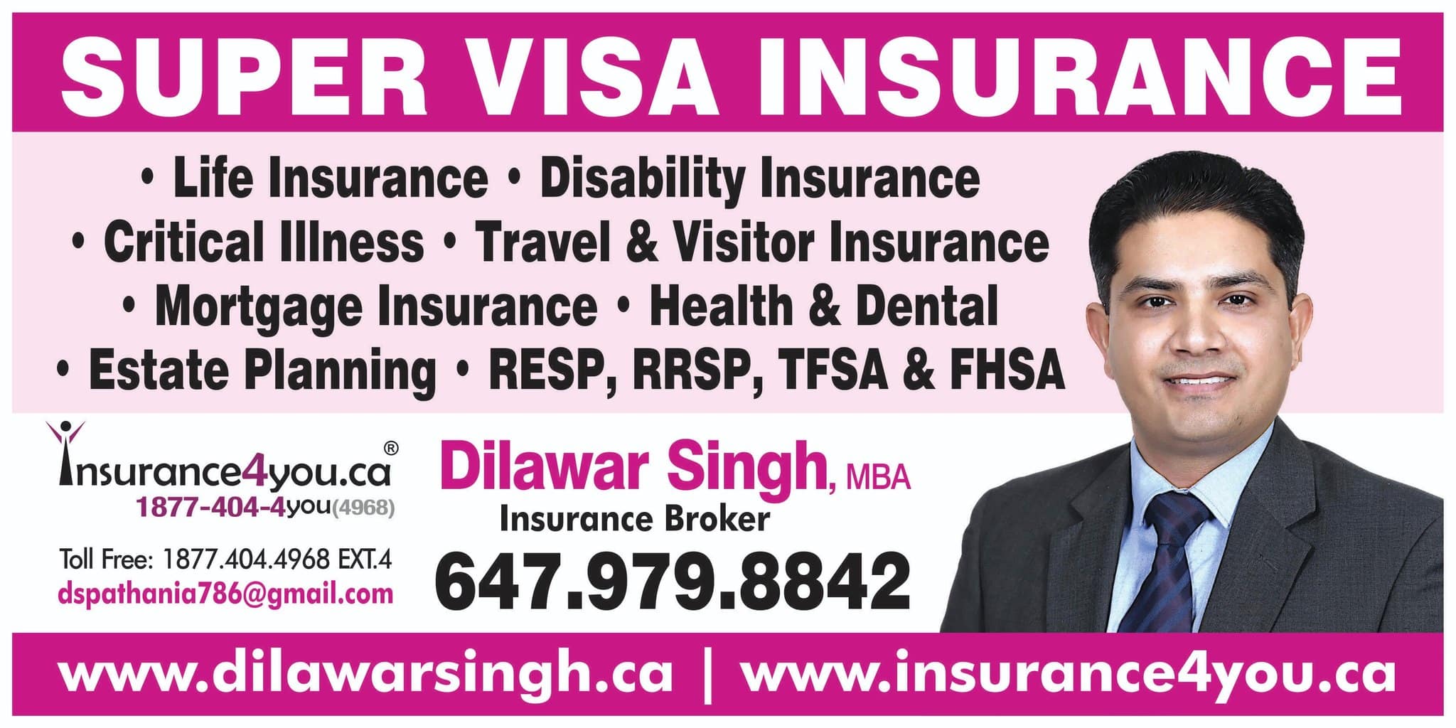 Insurance4you In Brampton, MBA, Insurance Broker, provides expert guidance to help individuals and families secure their financial future with confidence. Specializing in SUPER VISA INSURANCE, Travel & Visitor Insurance, Life, Disability, and Critical Illness coverage. Dilawar Singh ensures that you and your loved ones are protected in every stage of life.