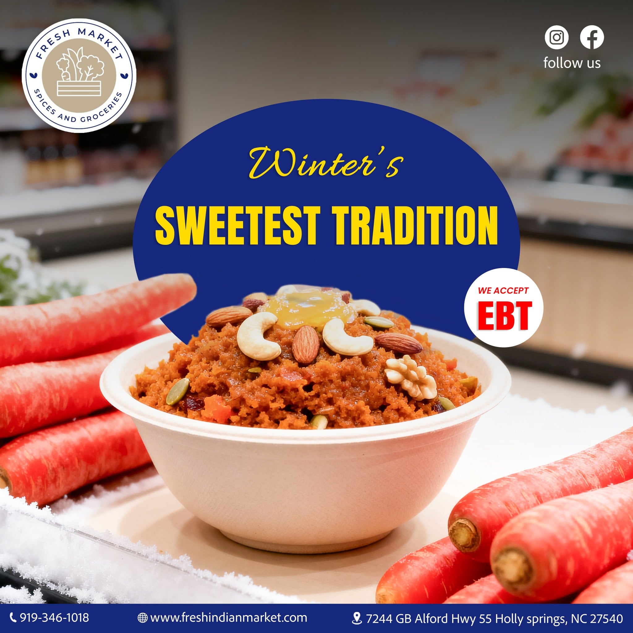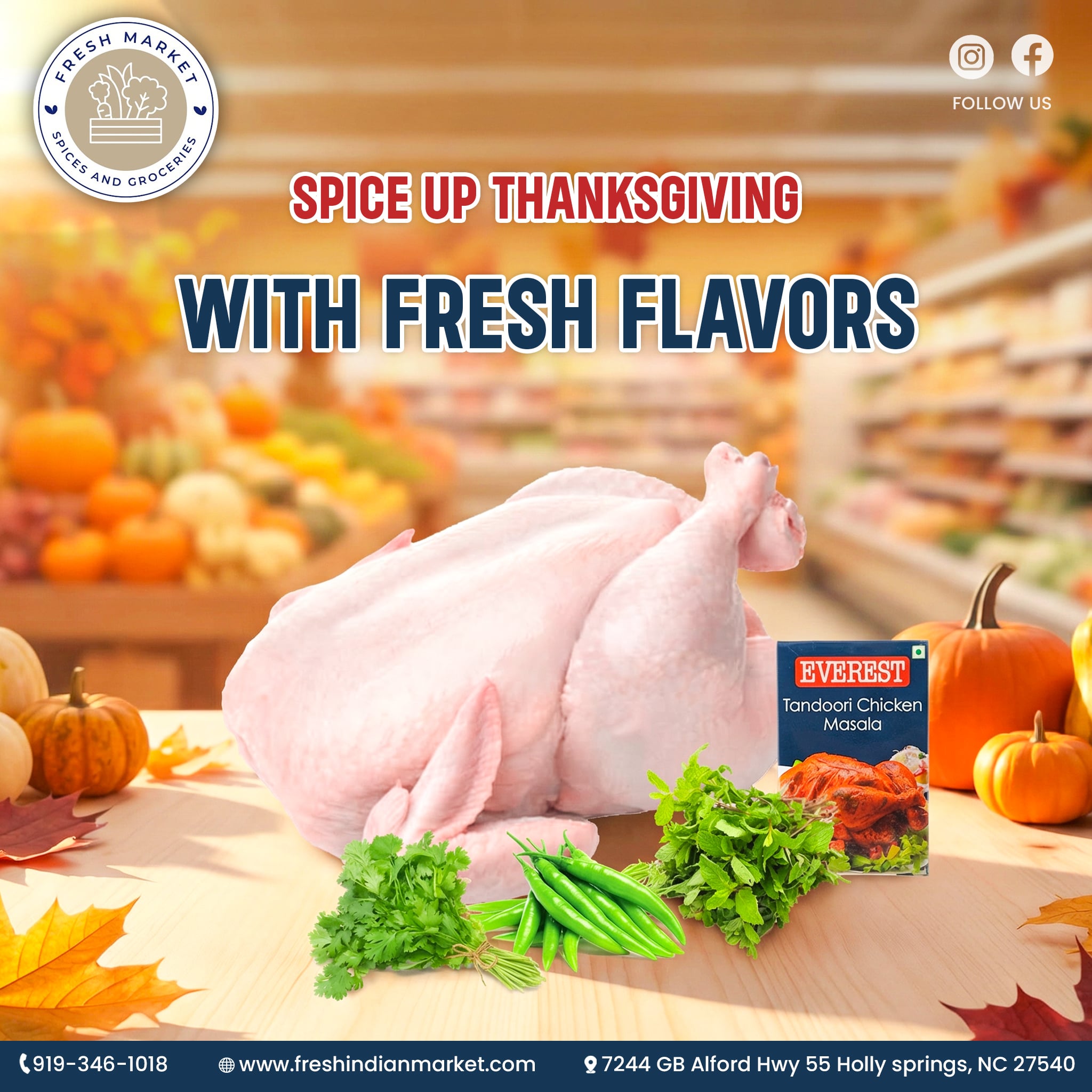 Fresh Indian Market in Holly Springs, NC is a locally owned South-Asian grocery store offering a wide selection of Indian and halal foods, from fresh produce and spices to lentils, grains, and halal meats. Conveniently located at 7244 GB Alford Hwy, they provide friendly, community-focused service with well-organized aisles and a clean, welcoming atmosphere. Whether you’re shopping for everyday essentials, traditional Indian “pooja” items, or halal meat for your next meal — Fresh Indian Market ensures quality, authenticity, and affordability. With online ordering, delivery or pickup options, and extended daily hours, it’s a go-to spot for South-Asian groceries in Holly Springs and the greater Raleigh–Cary area.