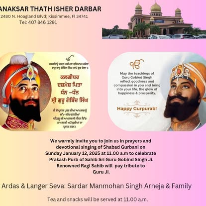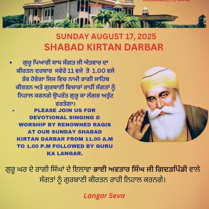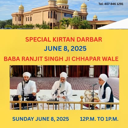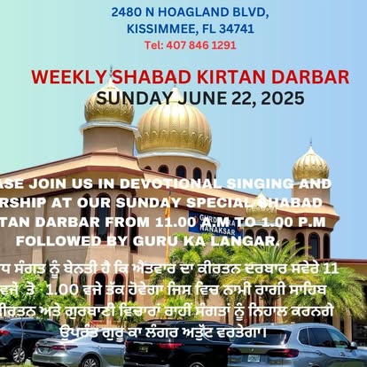 Gurdwara Nanaksar Florida is a Sikh Temple located south of Orlando, Florida. It is minutes away from major area attractions like Walt Disney World and Universal Orlando Theme Parks. The Gurdwara was established in 1987, and have gone through several stages of developments over the years. It provides a place for activity and worship for the Orlando Sikh Community. All visitors to Orlando are welcome to participate in the weekly Divans.