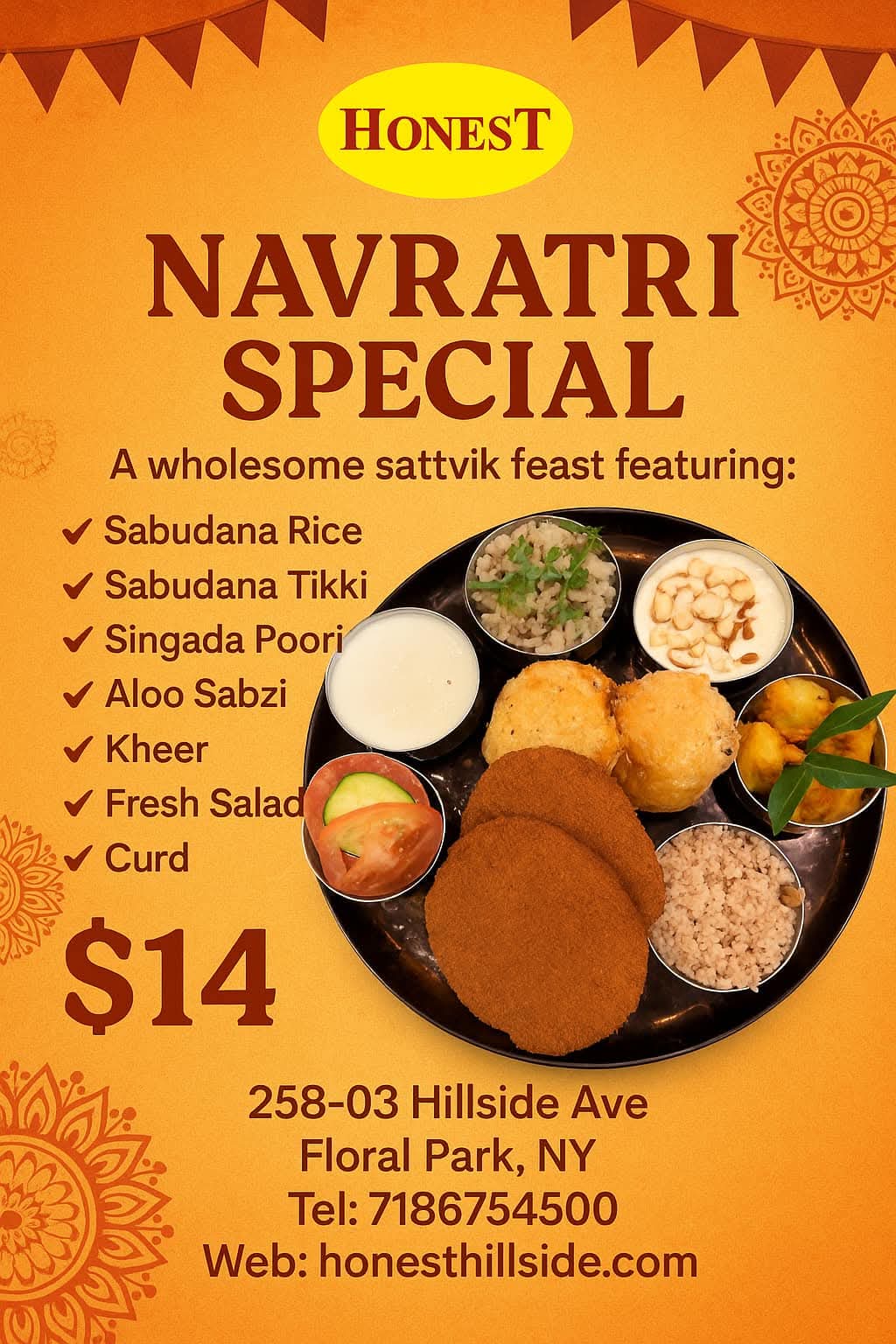 Honest Indian Vegetarian Restaurant brings the vibrant taste of India to Queens with a fully vegetarian menu. From street food favorites like pav bhaji and chaat to hearty thalis and dosas, Honest delivers authentic flavors in a warm, family-friendly setting.
