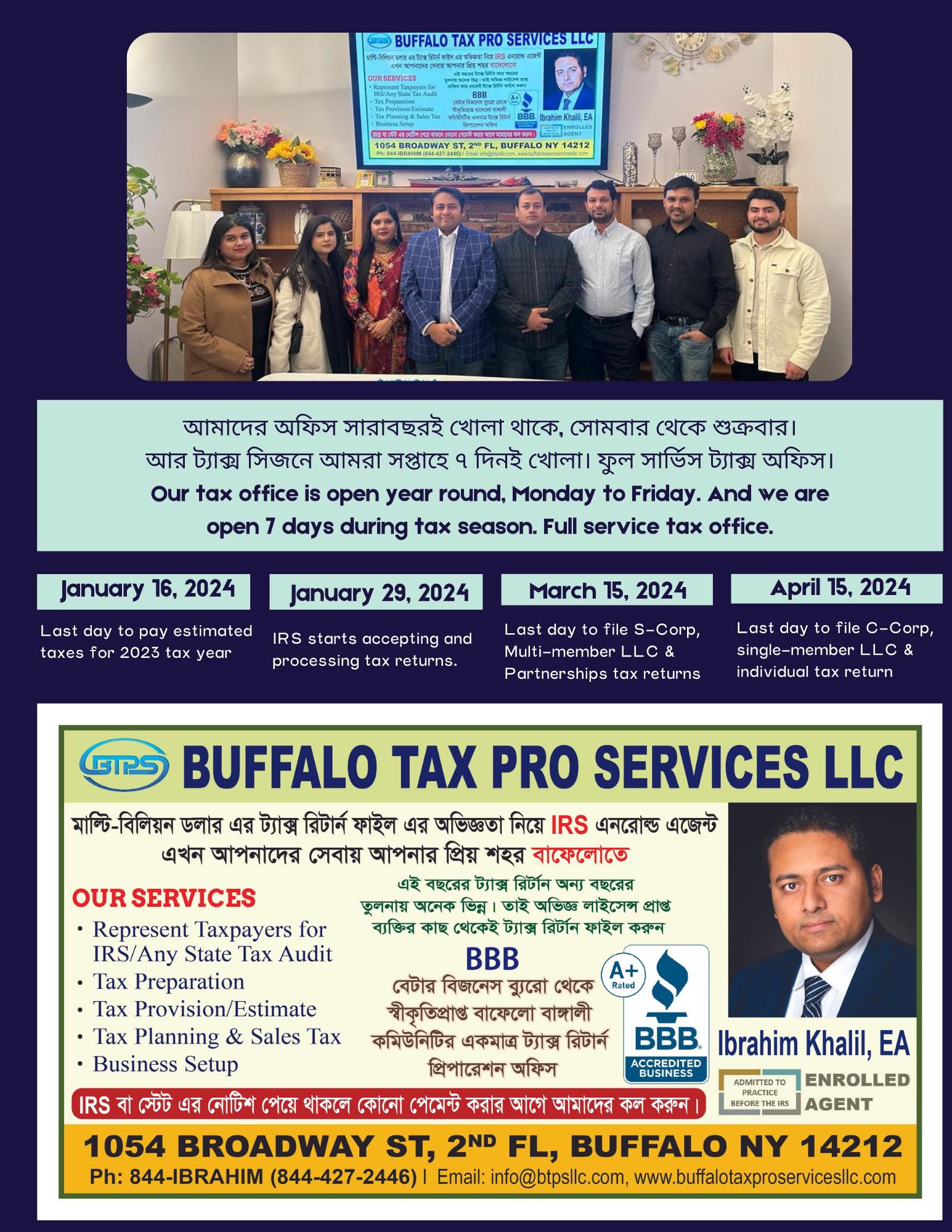 Our agency serves a diverse community, including Bengali-speaking clients, with services available in both English and Bengali to make insurance accessible and easy to understand. At Ibrahim Khalil Agency LLC, we are committed to building long-term relationships, offering reliable advice, and providing insurance solutions that give our clients confidence and security. Whether you need personal coverage, commercial protection, or guidance on complex insurance options, our experienced team is here to deliver trustworthy and tailored solutions to meet your needs.