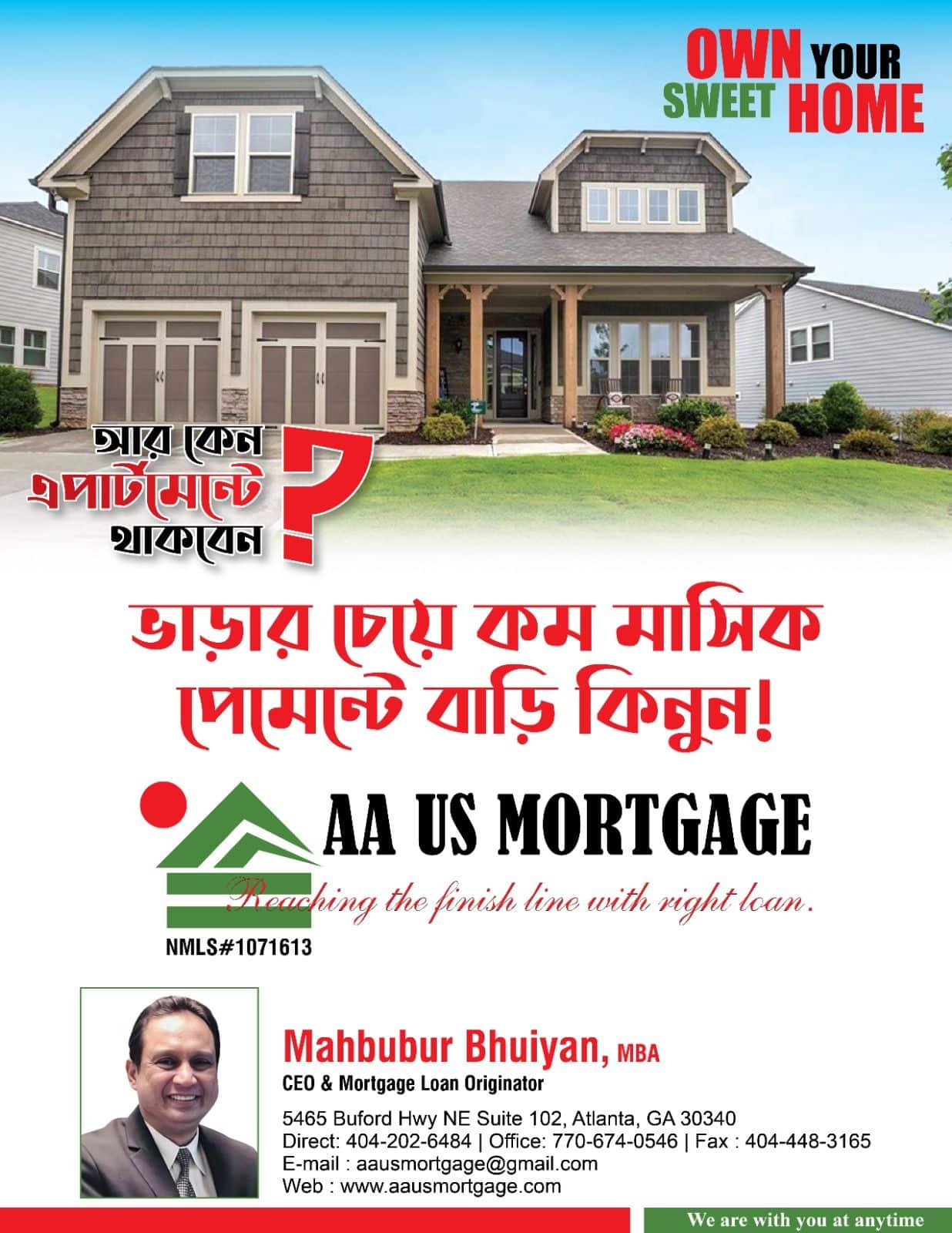 Mahbubur Rahman Bhuiyan is an experienced Mortgage Loan Officer and founder of AA US Mortgage LLC. With years of expertise in the mortgage and real estate finance industry, he is dedicated to helping clients navigate the home financing process with confidence and ease.