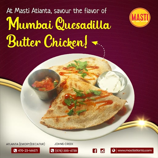 Step into Masti Indian Street Eats and dive into the vibrant flavour of India’s roadside kitchens-re-imagined for today. From sizzling small plates and crisp chaat to bold curries and fusion twists, every dish is crafted with fresh ingredients, bold spices and that unmistakable “fun” (that’s what “masti” means) factor. Whether you’re grabbing quick bites after work, sharing plates with friends or catering a party, Masti Indian Street Eats delivers a colorful, modern take on Indian street food—no long trip needed. Fresh. Flavorful. Unforgettable.