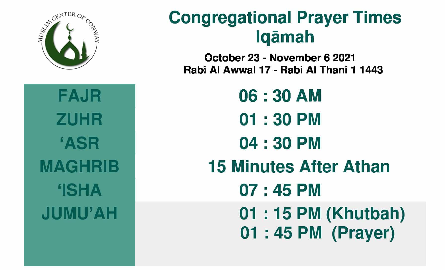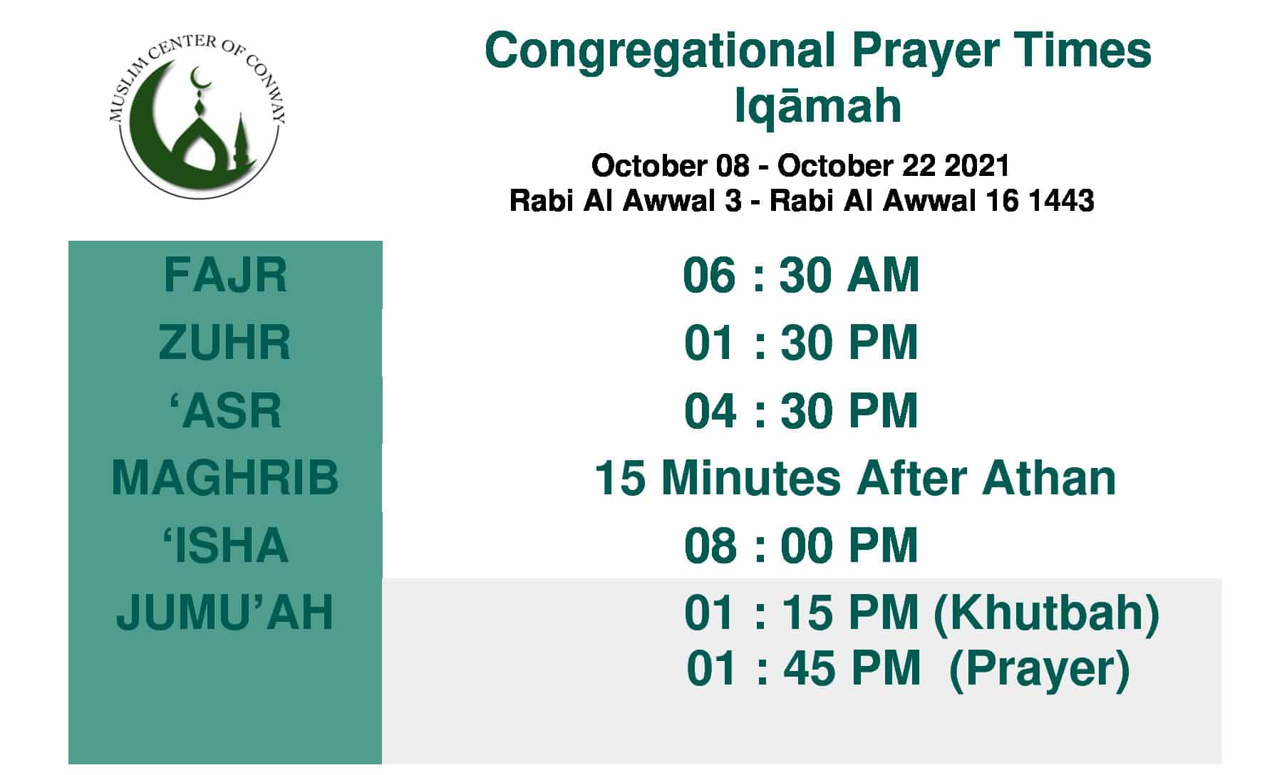 Five daily prayers and Jumu'ah: The MCC provides a space for all five congregational prayers daily, as well as the weekly Jumu'ah prayer.