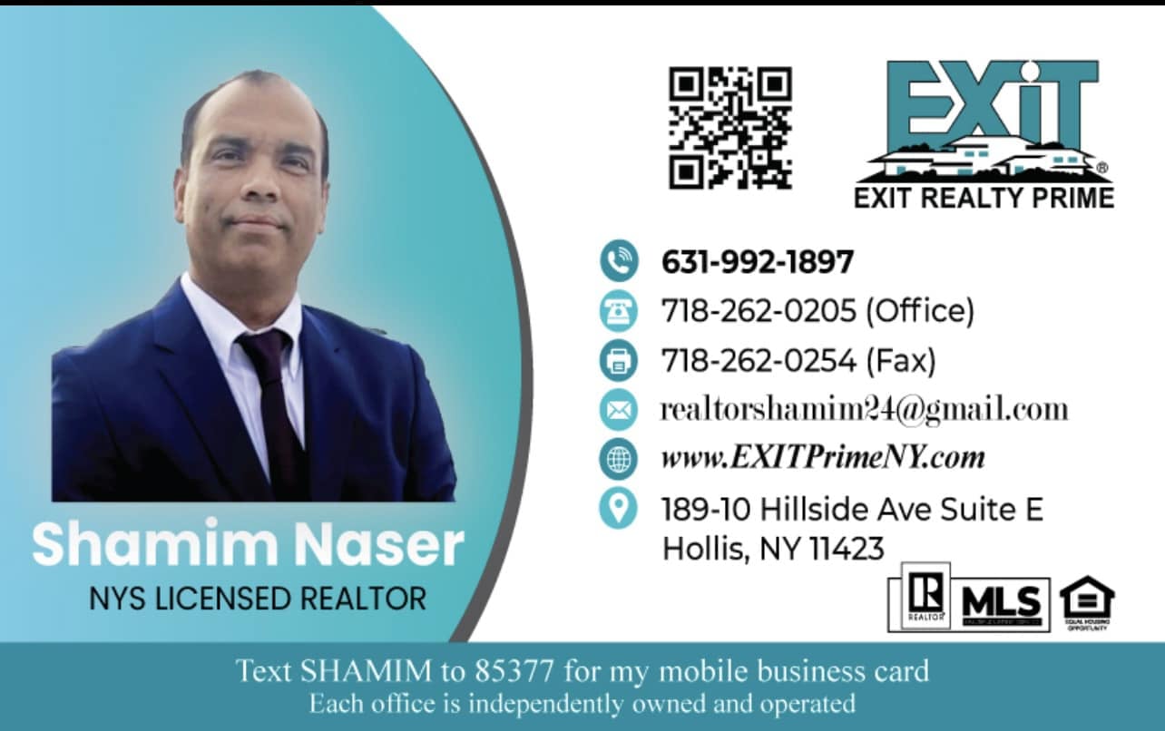 Naser Shamim is a dedicated real estate salesperson affiliated with EXIT Realty Prime in Hollis, New York. He specializes in assisting clients with buying, selling, and renting properties across Queens and Long Island. Known for his commitment to client satisfaction, Naser provides personalized services tailored to individual needs. His fluency in multiple languages enables him to effectively communicate with a diverse clientele, ensuring a smooth and informed real estate experience. Whether you're a first-time homebuyer or looking to invest, Naser is dedicated to guiding you through every step of the process.