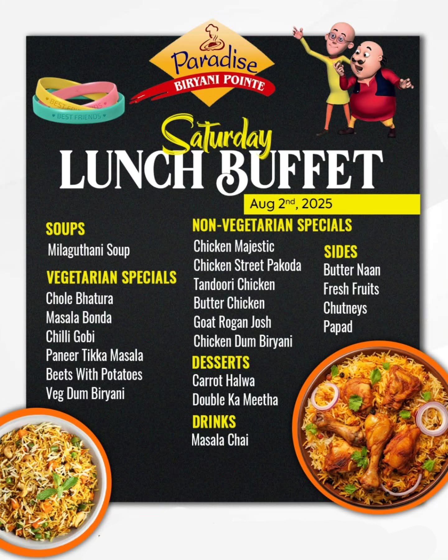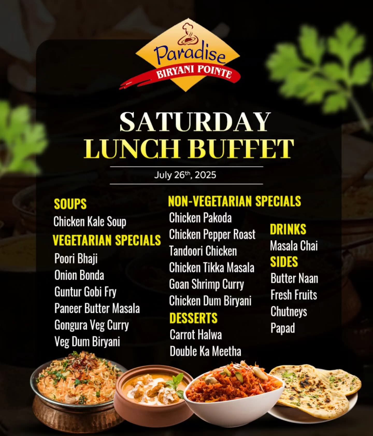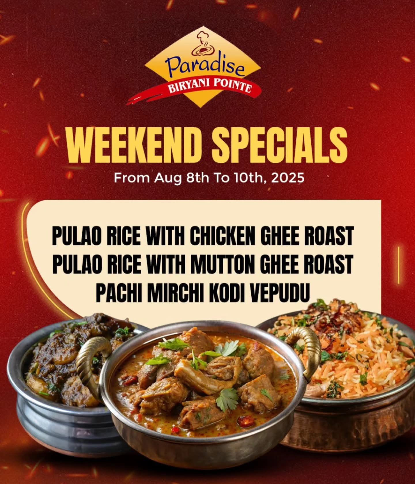 Paradise Biryani Pointe is a renowned Indian restaurant chain across the United States, specializing in authentic Hyderabadi Dum Biryani, crafted with traditional spices and premium halal ingredients. With over 45 locations in 24 states, each outlet offers a warm ambiance and a diverse menu, including tandoori specialties, curries, and street food-inspired dishes. Whether you're dining in or ordering online, Paradise Biryani Pointe promises an unforgettable culinary journey that brings the flavors of India to your doorstep.