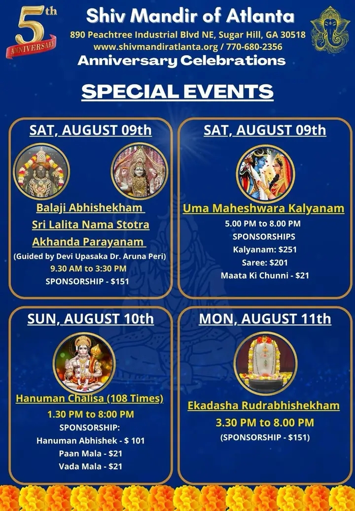 Shiv Mandir Atlanta is a Hindu temple dedicated to spiritual worship, cultural traditions, and community service. Open daily from 9 am–8 pm, it offers regular aartis, puja services, and special events while fostering volunteerism and togetherness for devotees of all ages.