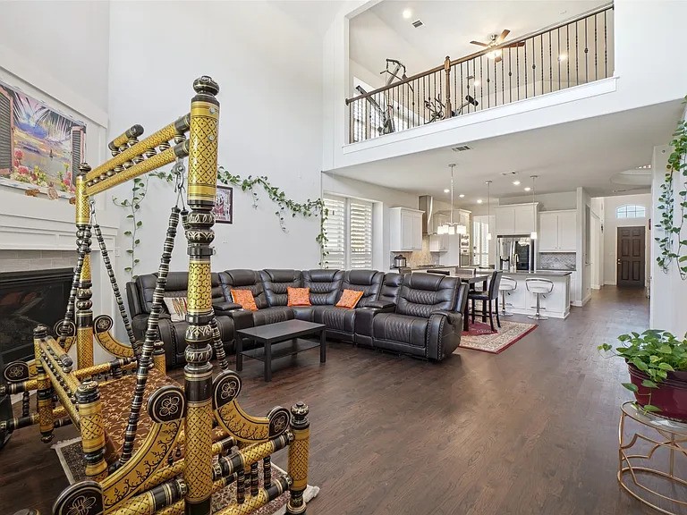 Stunning Executive Home in Encore at Las Colinas Discover exceptional living in this spacious two-story executive home, perfectly designed for modern families. Offering 5 bedrooms and 4.5 baths, this residence features a welcoming formal dining room and an open-concept layout ideal for entertaining. The gourmet kitchen boasts quartz countertops, 42-inch cabinetry, a large island, and premium GE® stainless steel appliances. Rich wood flooring flows into the great room, highlighted by a soaring sloped ceiling, cozy fireplace, and access to the covered patio—perfect for indoor-outdoor gatherings. The main level includes a private guest suite and a serene owner’s retreat with a luxurious en-suite bath featuring a soaking tub and separate shower. Upstairs, enjoy a spacious game room, tiered média room, and convenient half bath. Two bedrooms are connected by a Jack-and-Jill bathroom, while a third upstairs bedroom enjoys a private en-suite. Additional highlights include a laundry room near the garage and energy-efficient features such as 16 SEER AC, radiant barrier decking, and low-E windows for enhanced comfort and savings. I hour notice is must.