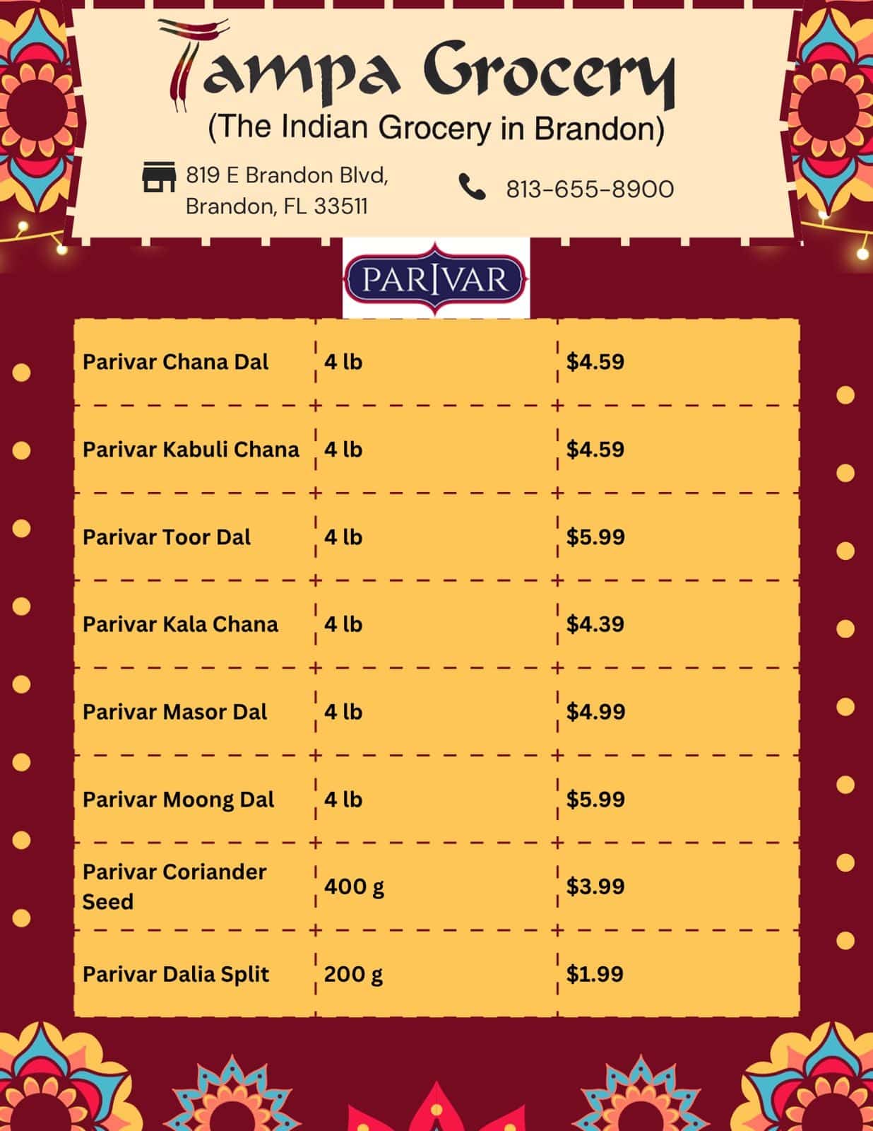Serving the community in the Tampa Bay area, Tampa Grocery is a well-stocked Indian grocery store and a go-to destination for authentic South Asian products in Brandon, FL. Located within Oakwood Plaza on East Brandon Boulevard, the store provides a wide range of essential items for traditional Indian cooking, including fresh produce, a large variety of spices, lentils, rice, and bulk supplies. The market is known for its extensive selection of South Indian products, such as beauty items and pickles, and offers a convenient online ordering option for pickup. With a focus on providing quality products and a friendly shopping experience, Tampa Grocery is a popular spot for the local community and others seeking Indian groceries in the Riverview and Lithia areas.