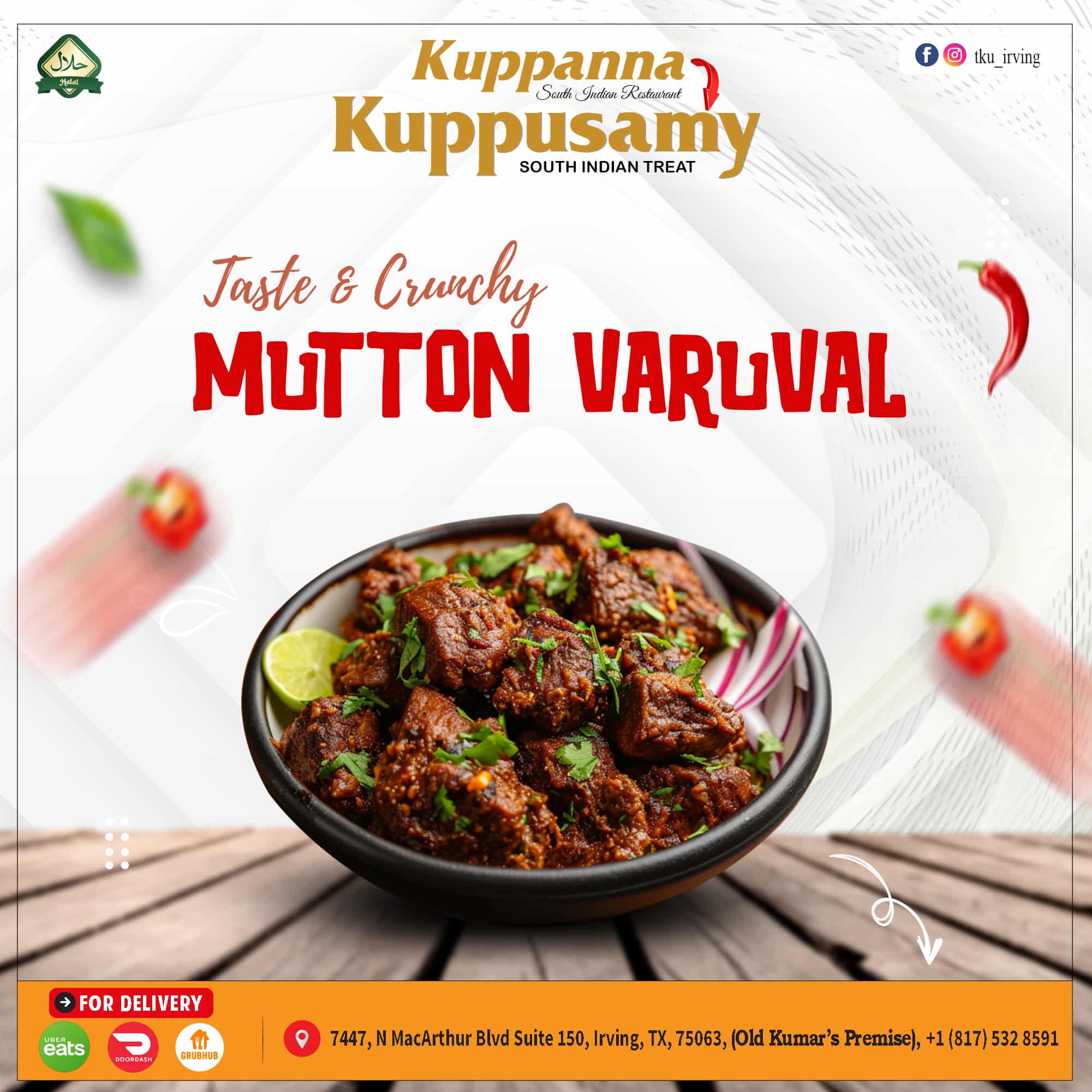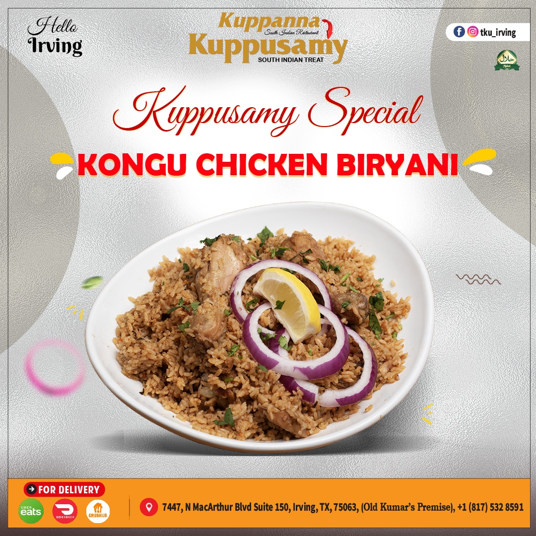 Step into Thiru Kuppusamy Unavagam, where the soul of South India comes alive! Known for its traditional Tamil Nadu cuisine, this beloved restaurant chain has become a culinary landmark across Texas — from Irving to Austin. Each dish is craft with passion, using time-honor recipes and freshly ground spices that capture the true essence of Chettinad and Kongu-style cooking.