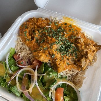 Signature items like Chicken Tikka Fries (crispy fries topped with tikka masala chicken, garlic sauce, parsley) and Beef Gyros with garlic-yogurt sauce.