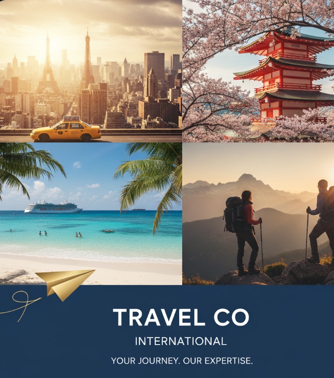 - Corporate & Business Travel Management: Business flight booking, Hotel and car rentals, Corporate event planning, Expense reporting and travel management