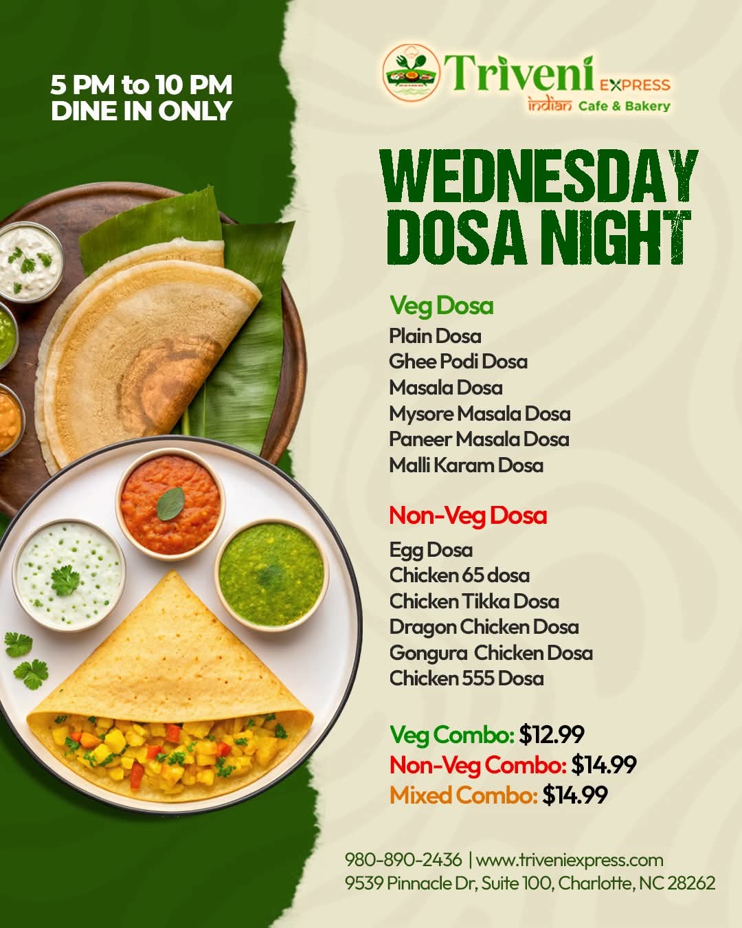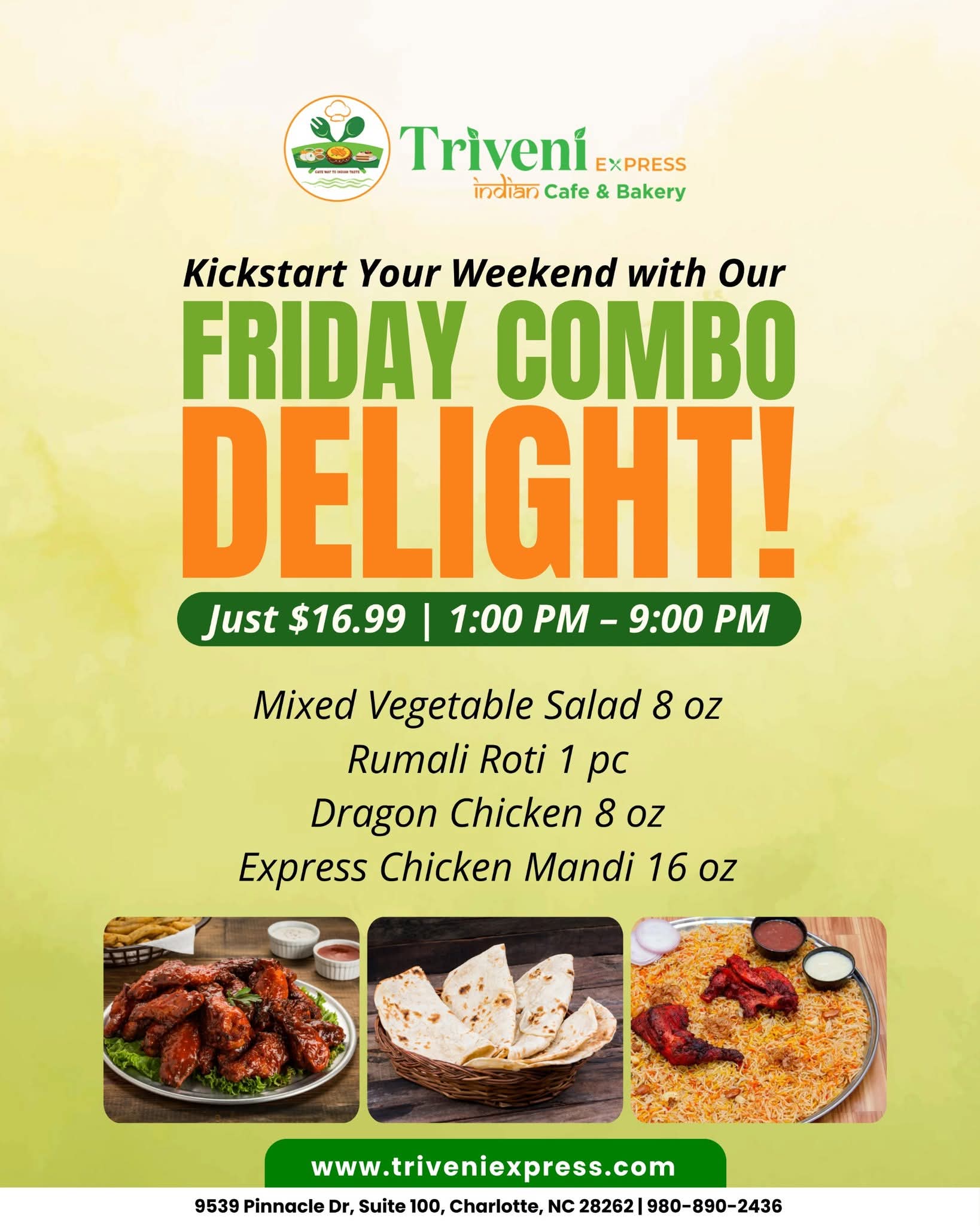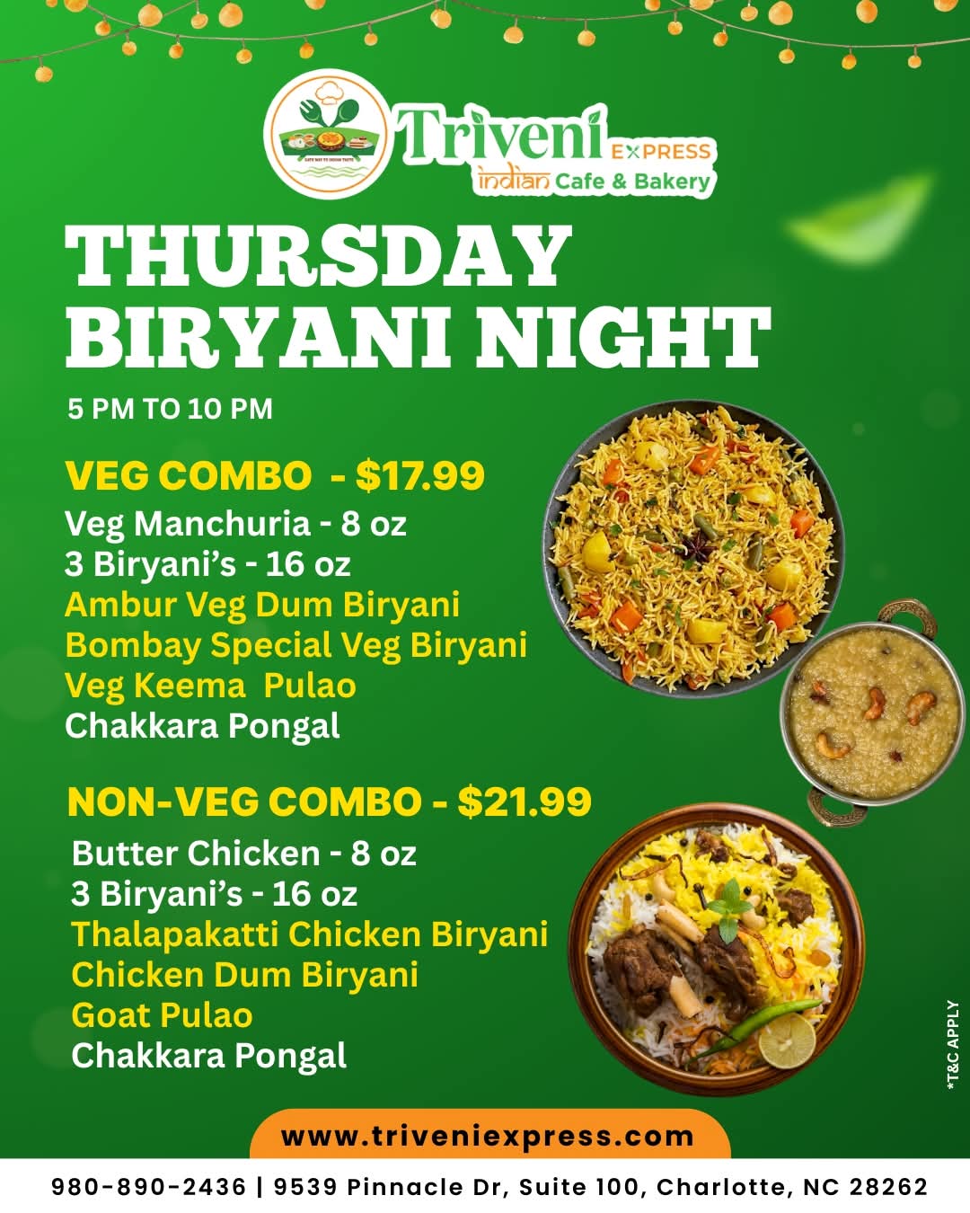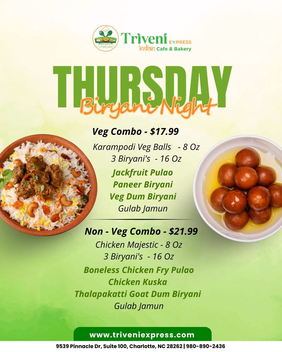 At Triveni Express, we bring the rich culinary heritage of Southern India to your table. Our menu boasts a variety of flavorful dishes, from aromatic biryanis to crispy dosas, all crafted with the freshest ingredients and authentic spices. Whether you're craving a hearty meal or looking to stock up on essential groceries, our store has you covered. Experience the warmth and hospitality of India, right in your neighborhood.