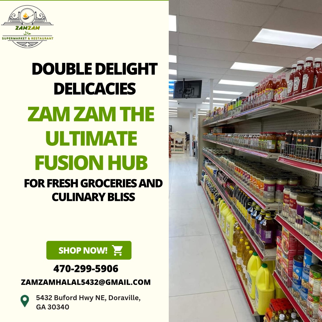 ZamZam Halal Supermarket & Restaurant in Doraville, GA is a one-stop destination for authentic halal groceries and freshly prepared South Asian cuisine. Open 24/7, it offers everything from rich curries and aromatic biryanis to sizzling tandoori dishes, savory samosas, and traditional snacks made with homestyle recipes. Alongside the restaurant, the supermarket is stocked with fresh halal meats, spices, and essentials, making it the perfect place to shop and dine. Whether you’re craving a hearty meal or stocking up on groceries, ZamZam delivers flavor, freshness, and convenience all under one roof. ????????????✨