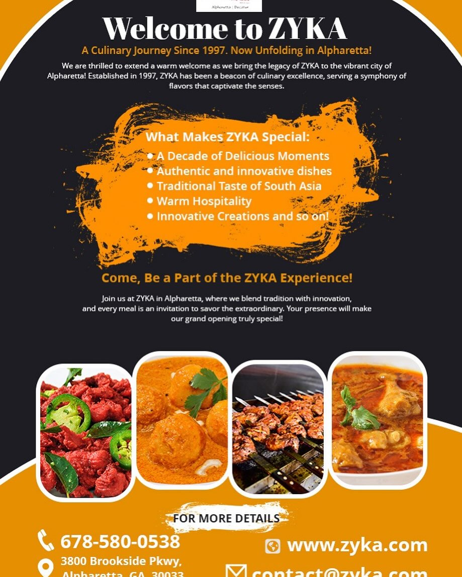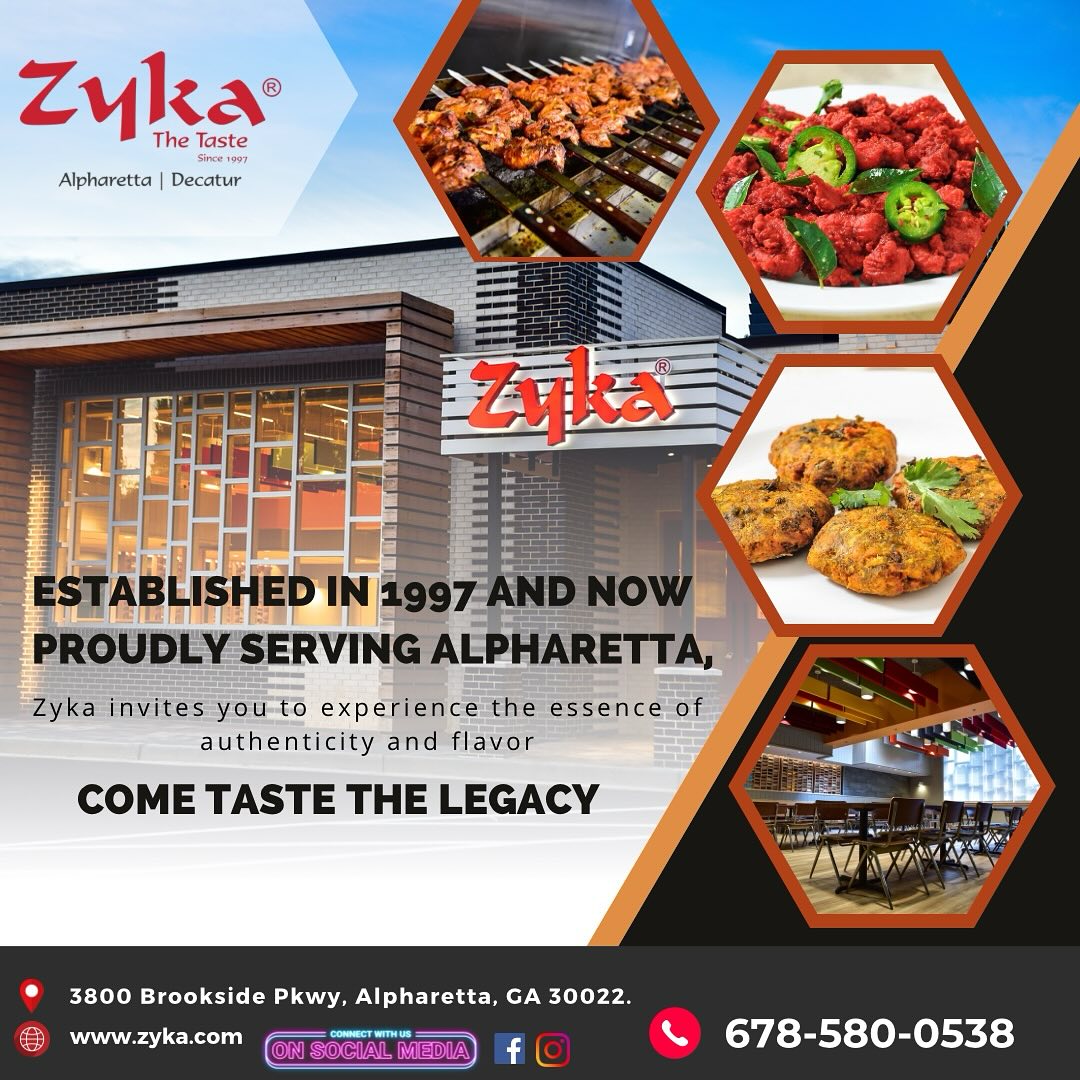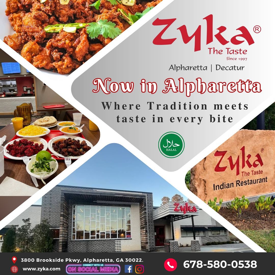 Zyka: The Taste is an Indian restaurant based in the Atlanta metro area, with two locations: Decatur (1677 Scott Blvd, Decatur, GA 30033) and Alpharetta (3800 Brookside Pkwy, Alpharetta, GA 30033). Found by Nooruddin Fazal, originally from Hyderabad, the brand is built on the idea of authentic Hyderabadi. Indian cuisine that stays true to its roots, with fresh ingredients. Bold flavours, and a mix of vegetarian, vegan and halal options. They highlight signature dishes like Chicken 65, Hyderabadi Biryani. And other richly spiced items that resonate with both Indian-diaspora diners. And the broader Atlanta dining scene.